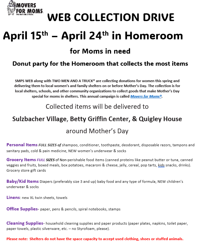 April 15: Donations for Movers for Moms Drive Begin